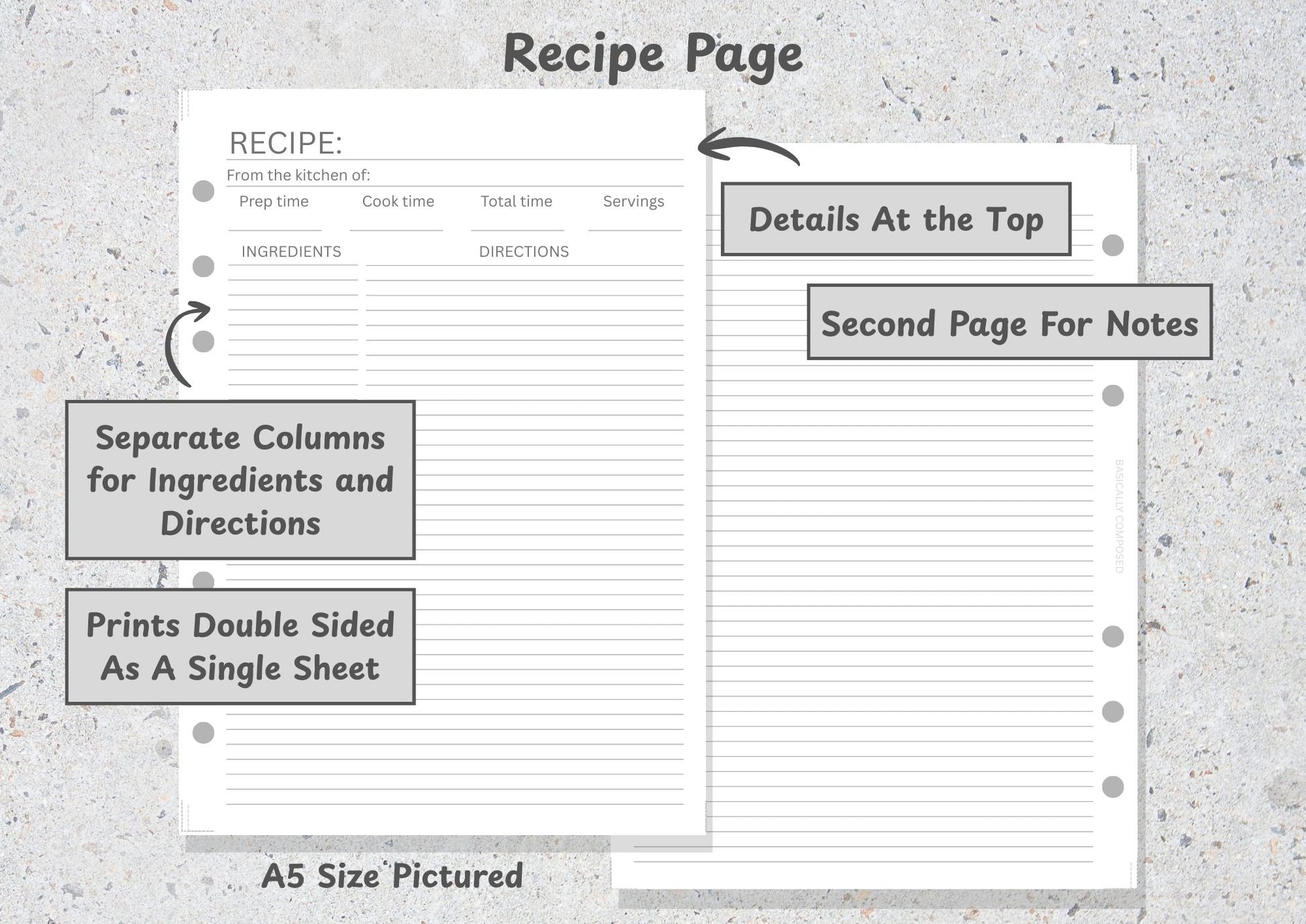 Don't let those precious family recipes get lost in a messy kitchen drawer. This clean recipe page is designed to help you curate a personal cookbook that can be passed down for generations. Whether it's your famous sourdough or your grandma's sunday roast, give your favorite meals the home they deserve.